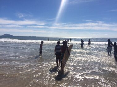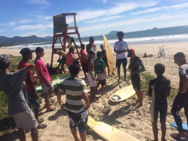 Com o propósito de conhecer e ocupar outros espaços da cidade de Florianópolis, o Projeto Fênix retomou as atividades com uma aula de Surf na praia da Barra da Lagoa e realizou a 2ª Pedalada incentivando os jovens a realizarem o circuito do bairro Monte Cristo até a Costeira do Pirajubaé. Trinta jovens estavam presentes nesse evento que tem como objetivo ampliar o uso da bicicleta como meio de transporte e também incentivar o esporte e lazer.